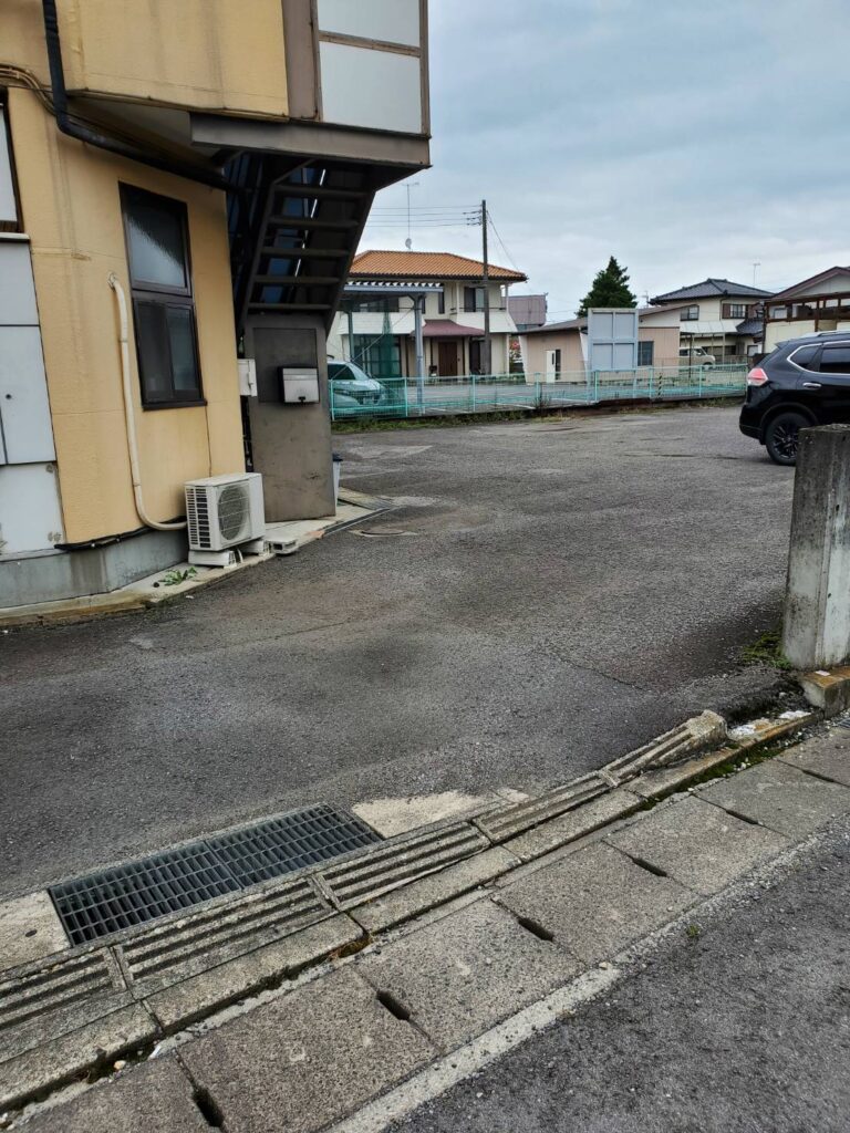 駐車場は建物裏にございます。建物南側の道路から入ってご利用ください。