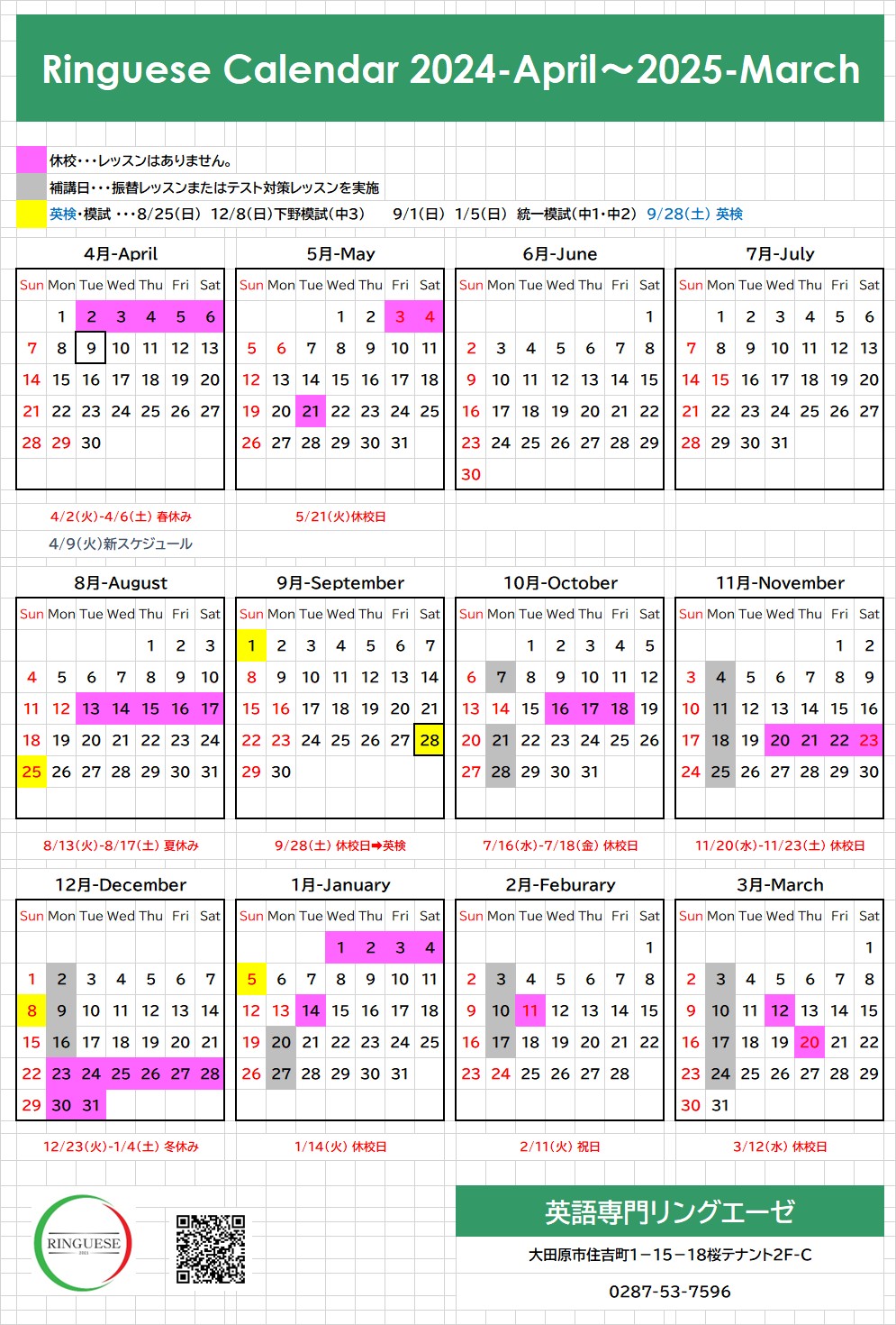 休校日 / 各日程はこちらのカレンダーをご確認下さい。